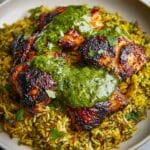 This Peruvian Chicken and Rice with Green Sauce recipe features juicy, crispy chicken thighs marinated with cumin, smoked paprika, and garlic powder, seared to perfection, then oven-roasted for tender, succulent results. Accompanied by fragrant cilantro-lime jasmine rice and a vibrant, creamy Peruvian Aji Verde sauce made with jalapeños, cilantro, queso fresco, and lime, this dish delivers bold, fresh flavors perfect for an impressive yet easy weeknight meal.