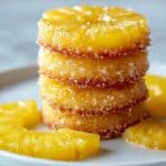 These Pineapple Upside Sugar Cookies combine a classic soft sugar cookie base with a juicy pineapple ring topper, creating a delightful twist on traditional sugar cookies. Topped with sparkling sugar for extra sweetness and crunch, these cookies are perfect for a tropical-inspired treat.