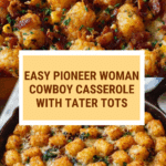 Pioneer Woman’s Cowboy Casserole is a hearty, comforting dish perfect for feeding a hungry family. Combining savory ground beef, crispy bacon, and golden tater tots, it’s an easy one-pan meal packed with flavor.