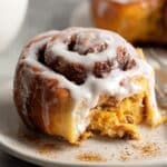 Store leftover pumpkin cinnamon rolls in an airtight container at room temperature for up to 2 days, or refrigerate for up to 5 days. Reheat gently in the microwave for 15-20 seconds or warm in a low oven before serving. The frosting may firm up in the fridge, so let rolls come to room temperature before eating.