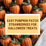 Bring a festive touch to your dessert table with these charming Pumpkin Patch Strawberries. Coated in vibrant orange chocolate and styled to look like tiny pumpkins, they’re perfect for fall celebrations or Halloween treats.
