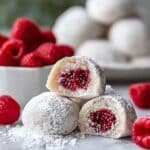 Raspberry Almond Snowball Cookies are delicate, buttery treats filled with sweet raspberry jam and finely ground almonds. These cookies are perfect for a cozy afternoon tea or a festive holiday cookie platter.
