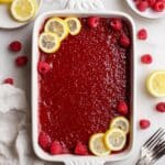 - Serve: Before serving, spread the remaining raspberry jam evenly over the top layer. Garnish with fresh raspberries and lemon slices as desired.