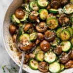Keywords: skillet zucchini recipe, sautéed mushrooms and zucchini, easy vegetable side dish, vegetarian zucchini mushrooms, garlic herb vegetables