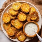 Fried green tomatoes are best eaten fresh for maximum crispness. Store any leftovers in an airtight container in the refrigerator for up to 2 days. To reheat, warm them in a skillet over medium heat or in a 350°F oven until crispy again. Avoid microwaving as it can make them soggy.