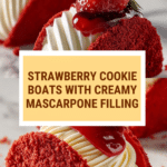 Keywords: strawberry dessert, cookie boats, mascarpone filling, strawberry glaze, summer dessert, shortbread cookies