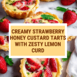 These Strawberry Honey Custard Tarts with Lemon Curd combine a tender buttery crust with a silky custard filling and fresh strawberries. Topped with tangy lemon curd, they make a refreshing and elegant dessert perfect for any occasion.
