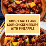 This Sweet and Sour Chicken recipe features crispy deep-fried chicken pieces coated in a vibrant, tangy sauce with fresh bell peppers, pineapple, and onions. The chicken is marinated with garlic, ginger, and soy sauce, battered with cornstarch for crispiness, and double-fried to perfection before being tossed in a homemade sweet and sour sauce. A perfect balance of tangy, sweet, and savory flavors for a delicious homemade Asian-inspired meal.
