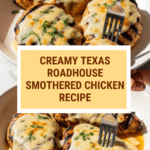 This Texas Roadhouse Smothered Chicken with Jack Cheese recipe features tender, seared chicken breasts smothered in a creamy garlic sauce and topped with melted Jack cheese. It combines simple ingredients to create a flavorful, comforting dish that’s perfect for dinner.