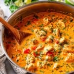 A flavorful and creamy Thai Chicken Coconut Curry made with tender chicken thighs, vibrant vegetables, and aromatic red curry paste simmered in rich coconut milk. This comforting dish balances spicy, sweet, and tangy notes, perfect served over jasmine rice and garnished with fresh herbs and lime.