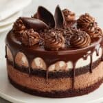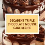 This Triple Chocolate Mousse Cake features a moist chocolate cake base topped with layers of silky dark, milk, and white chocolate mousses, finished with a smooth semi-sweet ganache. Perfect for chocolate lovers seeking an elegant, multi-textured dessert that’s as delightful to look at as it is to eat.