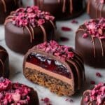 Delight in the Ultimate Chocolate Enrobed Berry Gelee Delights — a sophisticated dessert featuring smooth, dark chocolate shells filled with a luscious berry gelee made from fresh berry puree and gelatin, garnished with fresh berries for an elegant finish. This recipe combines the richness of tempered dark chocolate with the bright, tart flavors of berry gelee for a stunning and delicious treat.