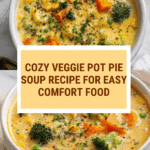 This comforting Veggie Pot Pie Soup brings all the classic flavors of a pot pie in a creamy, hearty soup form. Loaded with fresh and frozen vegetables like carrots, potatoes, broccoli, peas, and corn, simmered in a savory thyme and rosemary-infused vegetable broth, and finished with cream and milk for richness. It’s an easy one-pot meal perfect for chilly days or when you want cozy comfort food without the fuss of baking a pie.