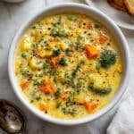 This comforting Veggie Pot Pie Soup brings all the classic flavors of a pot pie in a creamy, hearty soup form. Loaded with fresh and frozen vegetables like carrots, potatoes, broccoli, peas, and corn, simmered in a savory thyme and rosemary-infused vegetable broth, and finished with cream and milk for richness. It’s an easy one-pot meal perfect for chilly days or when you want cozy comfort food without the fuss of baking a pie.