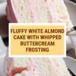 A moist and flavorful White Almond Cake layered with a light and fluffy whipped buttercream frosting infused with almond and vanilla extracts, perfect for celebrations or a delightful dessert treat.