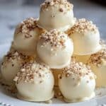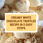 Delicious and creamy white chocolate truffles made with melted white chocolate, heavy cream, and vanilla extract. These rich treats are coated in a mixture of cocoa powder and chopped nuts, perfect for gifting or enjoying as a decadent dessert.